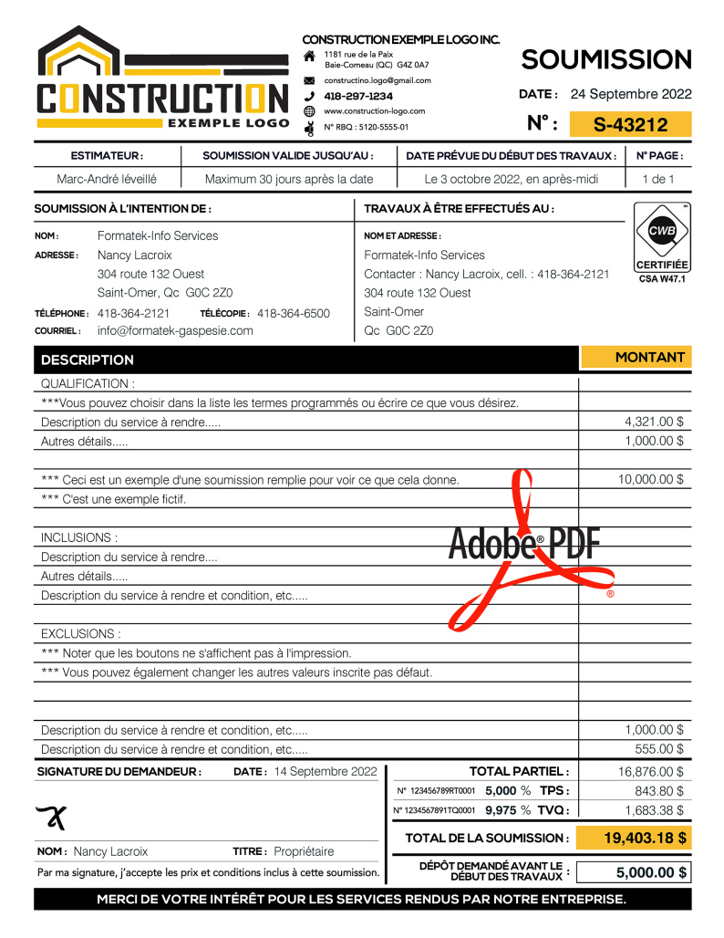 *TOUT VOIR - PDF DYNAMIQUE / INTERACTIF, PDF - SOUMISSION, PDF - MODÈLE M3, PDF - CONSTRUCTION |