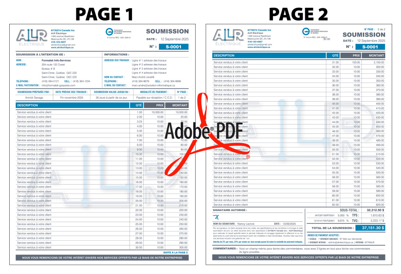 Particularité : Le prix de base ce formulaire de soumission est plus élevé parce qu'il contient des menus déroulants. Sans les menus, le prix de base est de 165.00 $