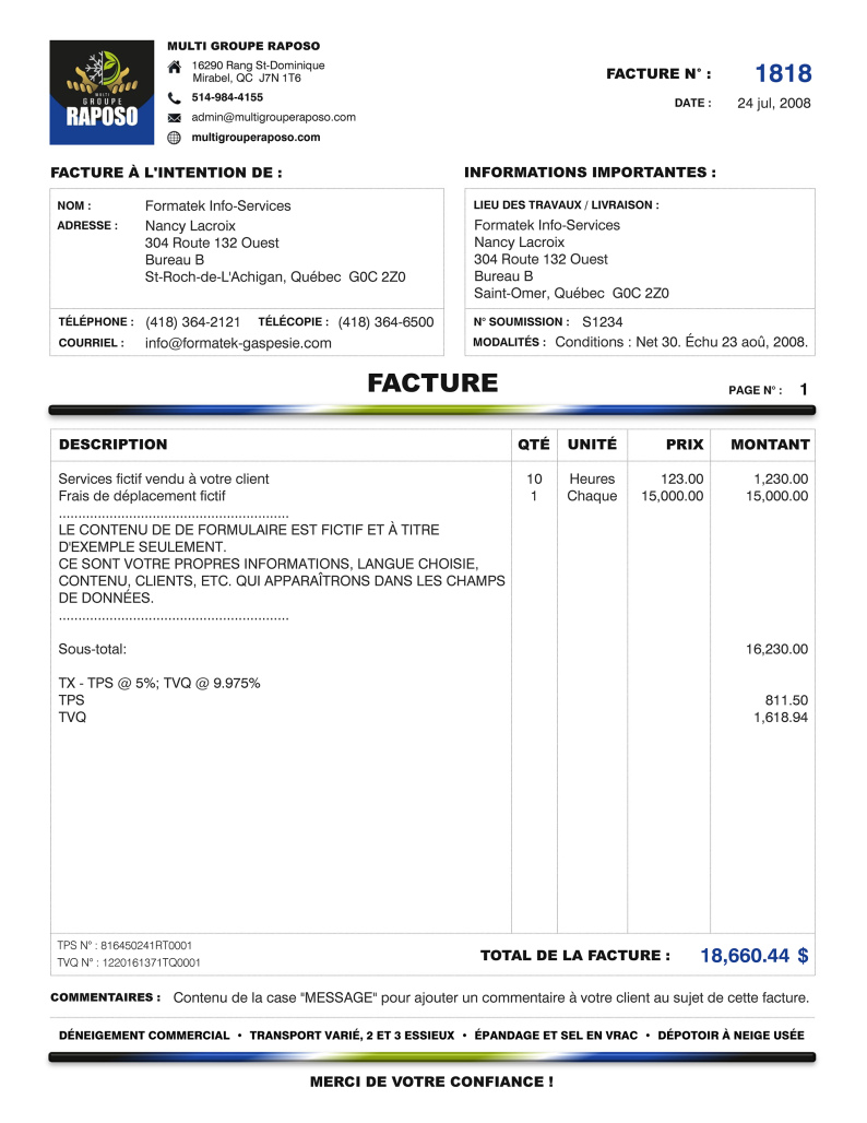 INSTALLATION : Pour la première commande, vous devez également prévoir un coût unique obligatoire de 40.00 $ pour l'installation à distance de 1 à 3 formulaires afin que la procédure vous soit expliquée pour une première fois (téléphone + connexion Internet). Ce prix sera inclus à la soumission de prix officielle qui vous sera envoyée par courriel.