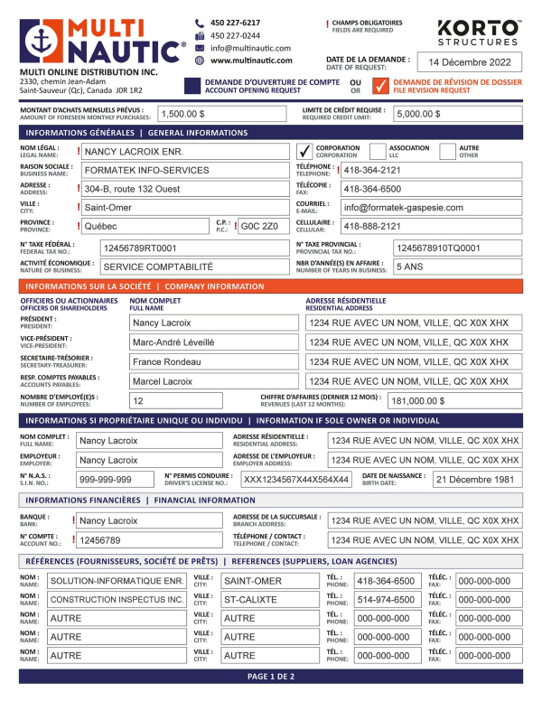 Le prix de base des « # Réf » des exemples de formulaire contenant un X sont à titre de référence seulement, car ce sont des formulaires plus onéreux parce qu’ils ont été entièrement personnalisés pour le client.