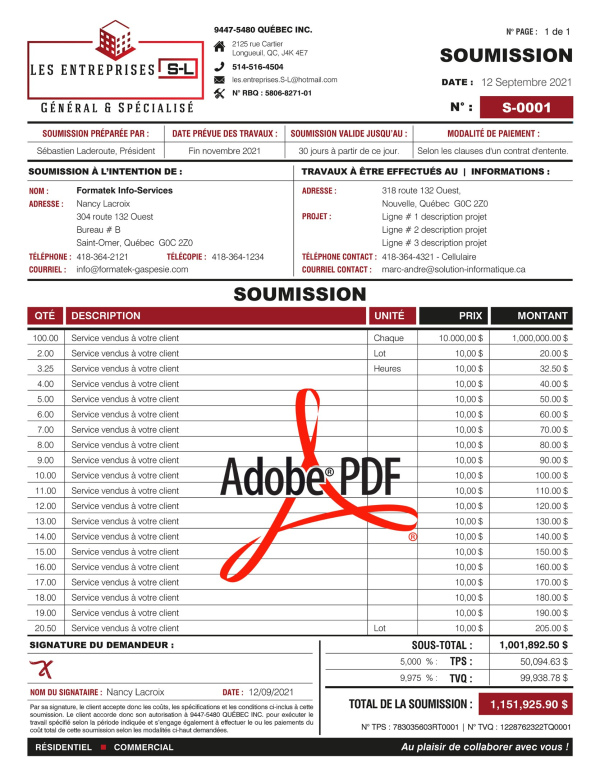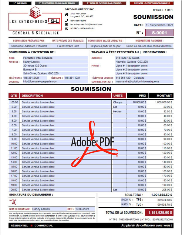 SOUMISSION / DEVIS / ESTIMATION |