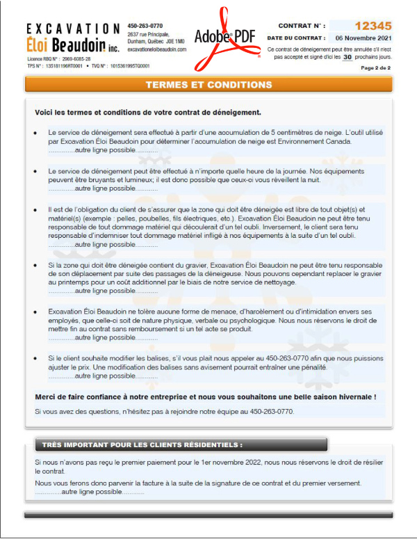 *TOUT VOIR - PDF DYNAMIQUE / INTERACTIF, PDF - CONTRAT, PDF - CONSTRUCTION, PDF - EXCAVATION, PDF - ENTRETIEN-DÉNEIGEMENT, PDF - MODÈLE M1 |