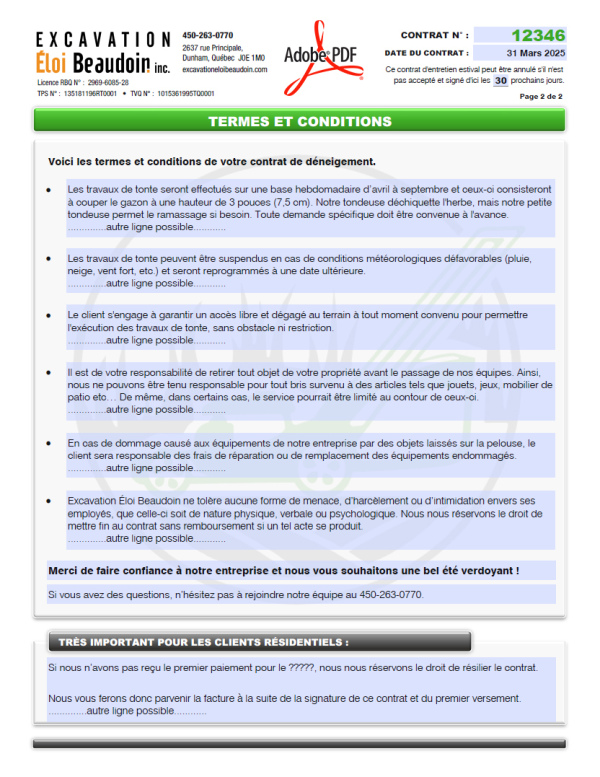 *TOUT VOIR - PDF DYNAMIQUE / INTERACTIF, PDF - CONTRAT, PDF - CONSTRUCTION, PDF - EXCAVATION, PDF - ENTRETIEN-DÉNEIGEMENT, PDF - MODÈLE M1 |