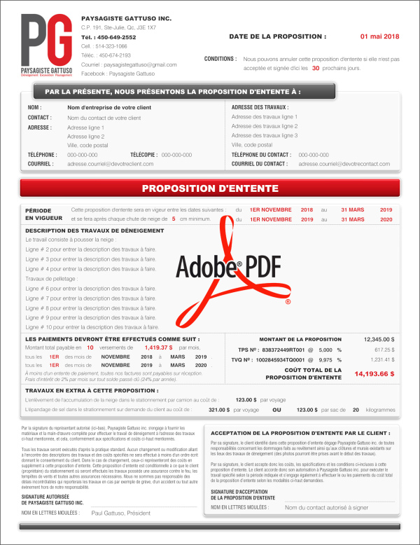 *TOUT VOIR - PDF DYNAMIQUE / INTERACTIF, PDF - CONTRAT, PDF - CONSTRUCTION, PDF - EXCAVATION, PDF - ENTRETIEN-DÉNEIGEMENT, PDF - MODÈLE M1 |