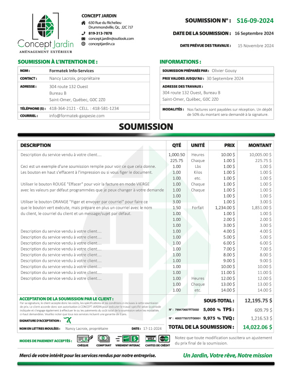 SOUMISSION / DEVIS / ESTIMATION |