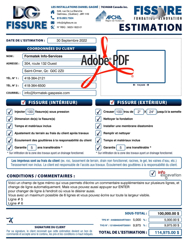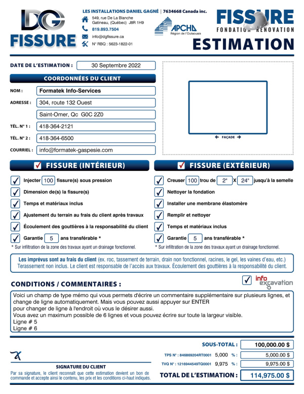 SOUMISSION / DEVIS / ESTIMATION |