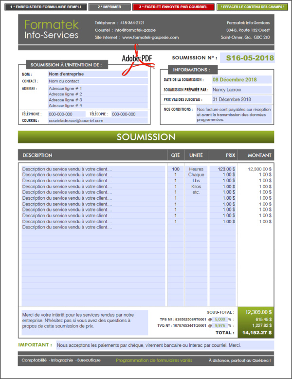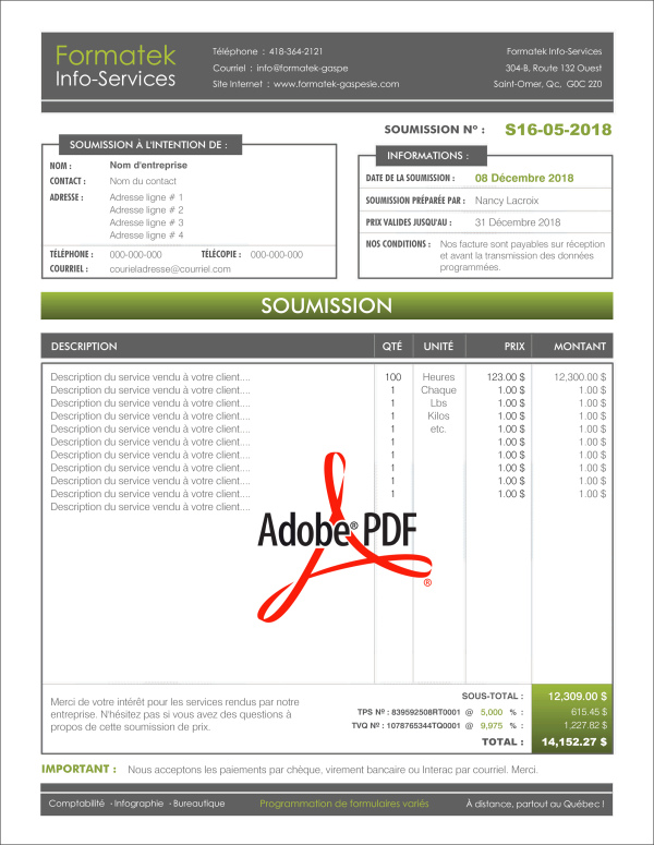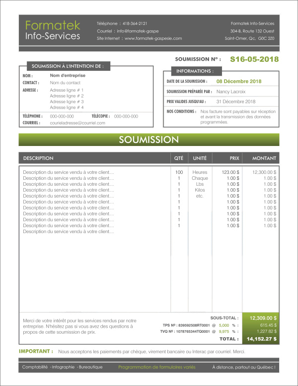 SOUMISSION / DEVIS / ESTIMATION |