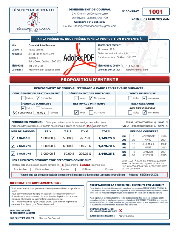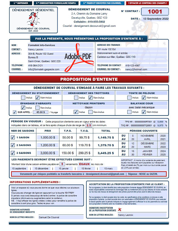 *TOUT VOIR - PDF DYNAMIQUE / INTERACTIF, PDF - CONTRAT, PDF - ENTRETIEN-DÉNEIGEMENT, PDF - MODÈLE M2 |