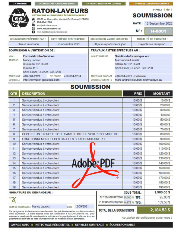 SOUMISSION / DEVIS / ESTIMATION |