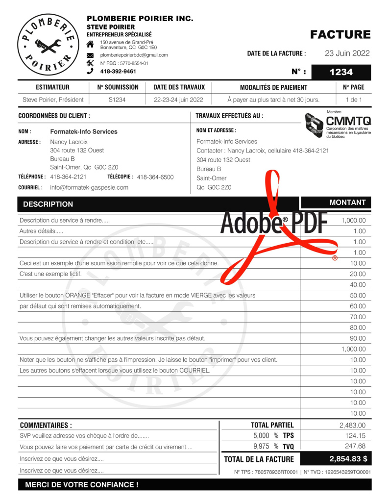 *TOUT VOIR - PDF DYNAMIQUE / INTERACTIF, PDF - FACTURE, PDF - MODÈLE M3, PDF - CONSTRUCTION, PDF - PLOMBERIE |