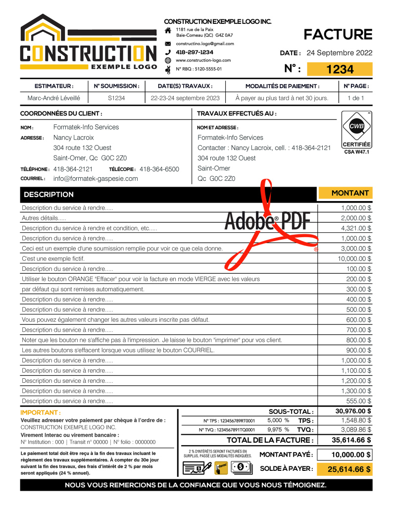 *TOUT VOIR - PDF DYNAMIQUE / INTERACTIF, PDF - FACTURE, PDF - MODÈLE M3, PDF - CONSTRUCTION |