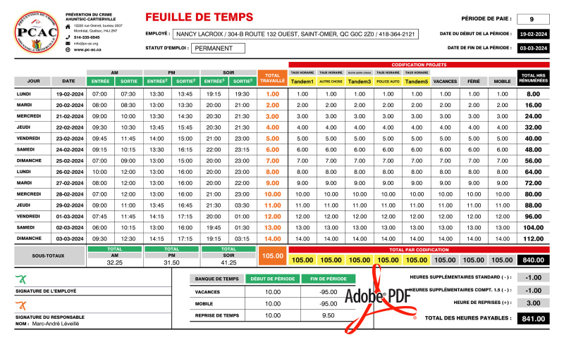 PDF | FEUILLE DE TEMPS | # P-M3SE05-1