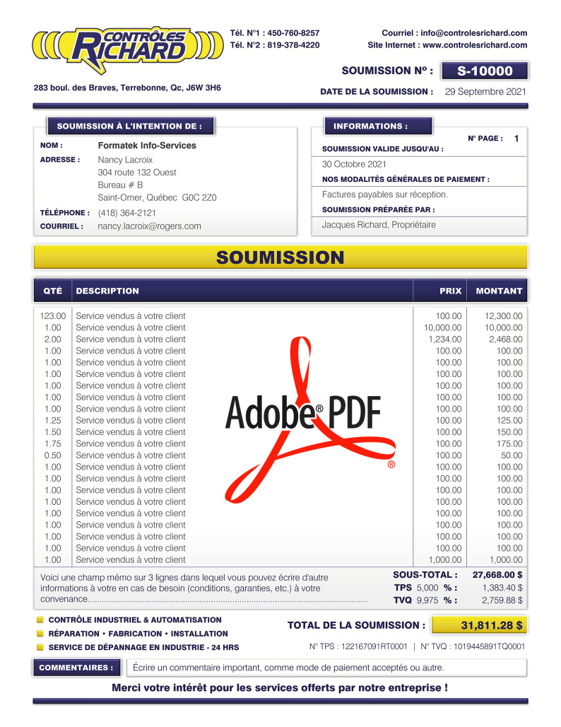*TOUT VOIR - PDF DYNAMIQUE / INTERACTIF, PDF - MODÈLE M1, PDF - SOUMISSION, PDF - INDUSTRIEL |
