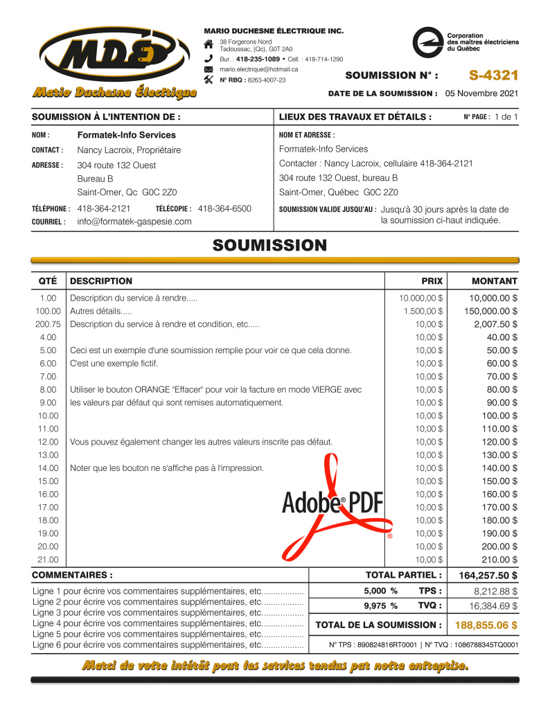 SOUMISSION / DEVIS / ESTIMATION |