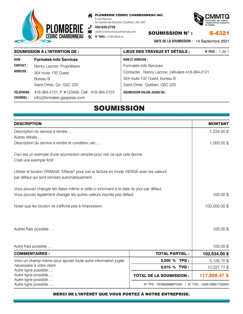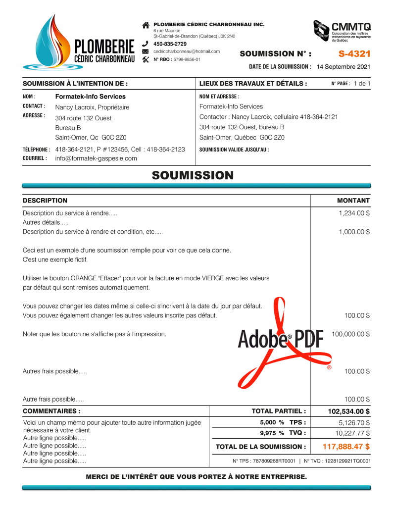 SOUMISSION / DEVIS / ESTIMATION |