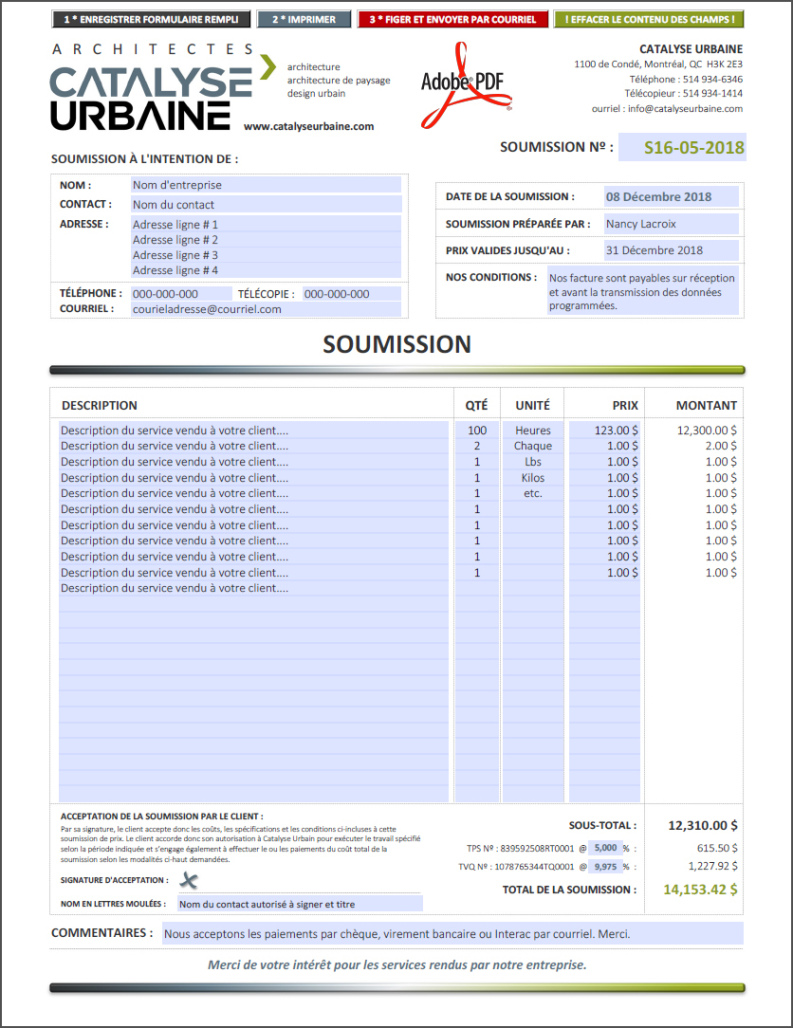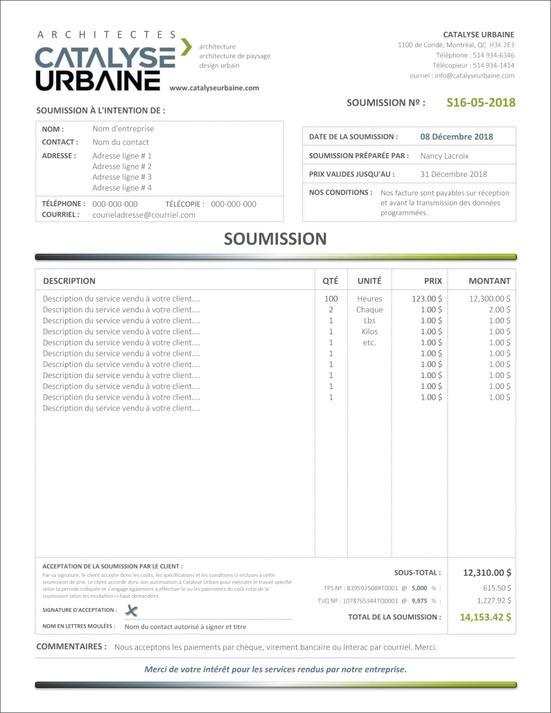 SOUMISSION / DEVIS / ESTIMATION |