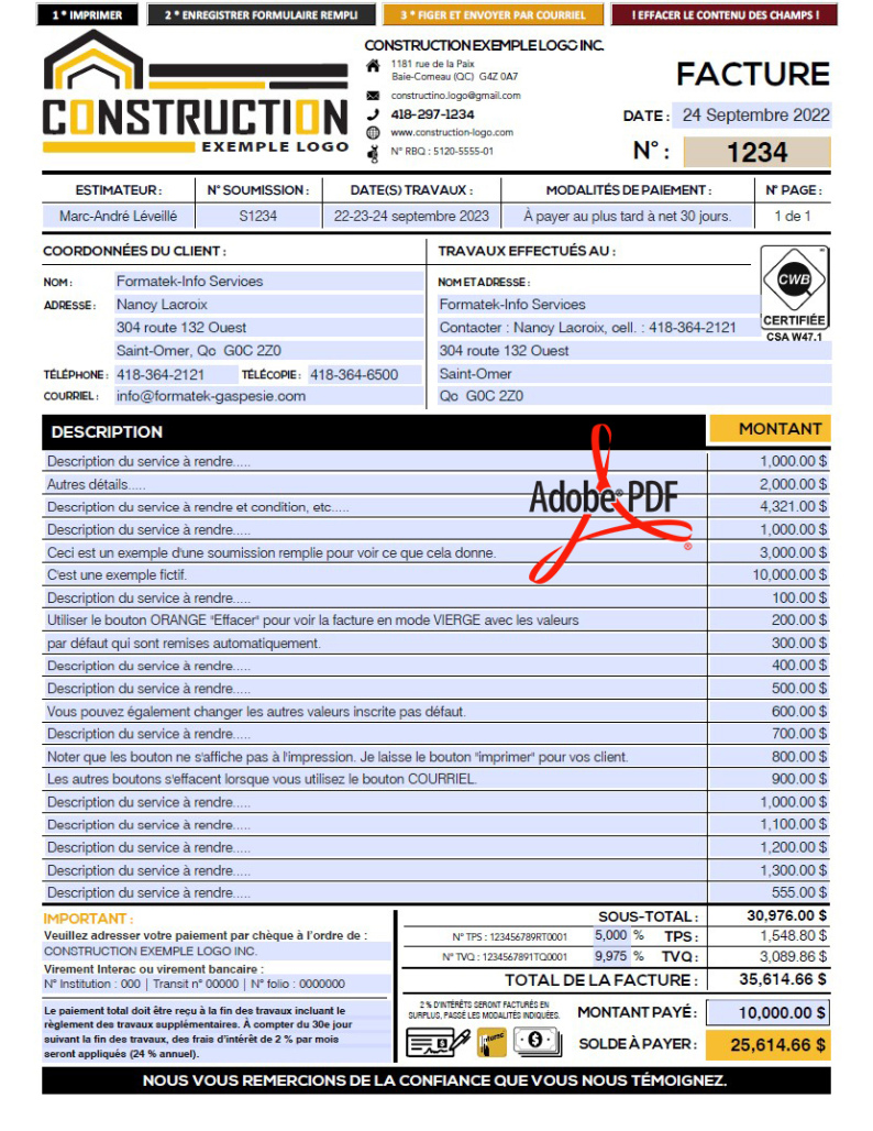 *TOUT VOIR - PDF DYNAMIQUE / INTERACTIF, PDF - FACTURE, PDF - MODÈLE M3, PDF - CONSTRUCTION |
