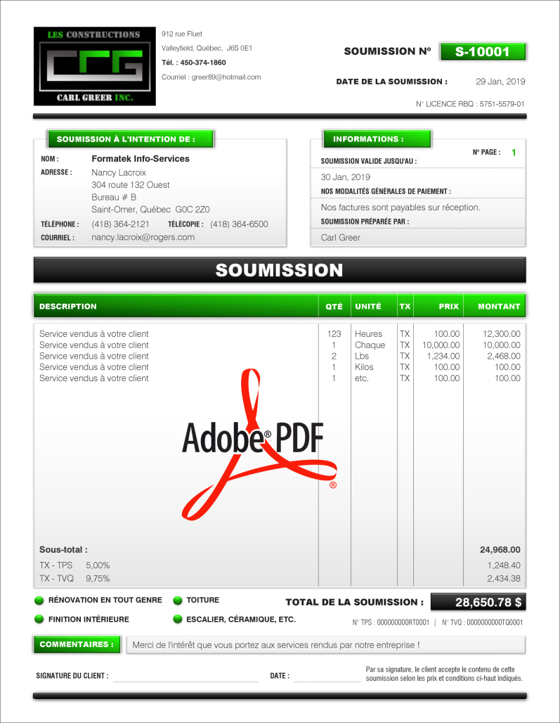 *TOUT VOIR - PDF DYNAMIQUE / INTERACTIF, PDF - CONSTRUCTION, PDF - MODÈLE M1, PDF - RÉNOVATION, PDF - TOITURE, PDF - SOUMISSION |