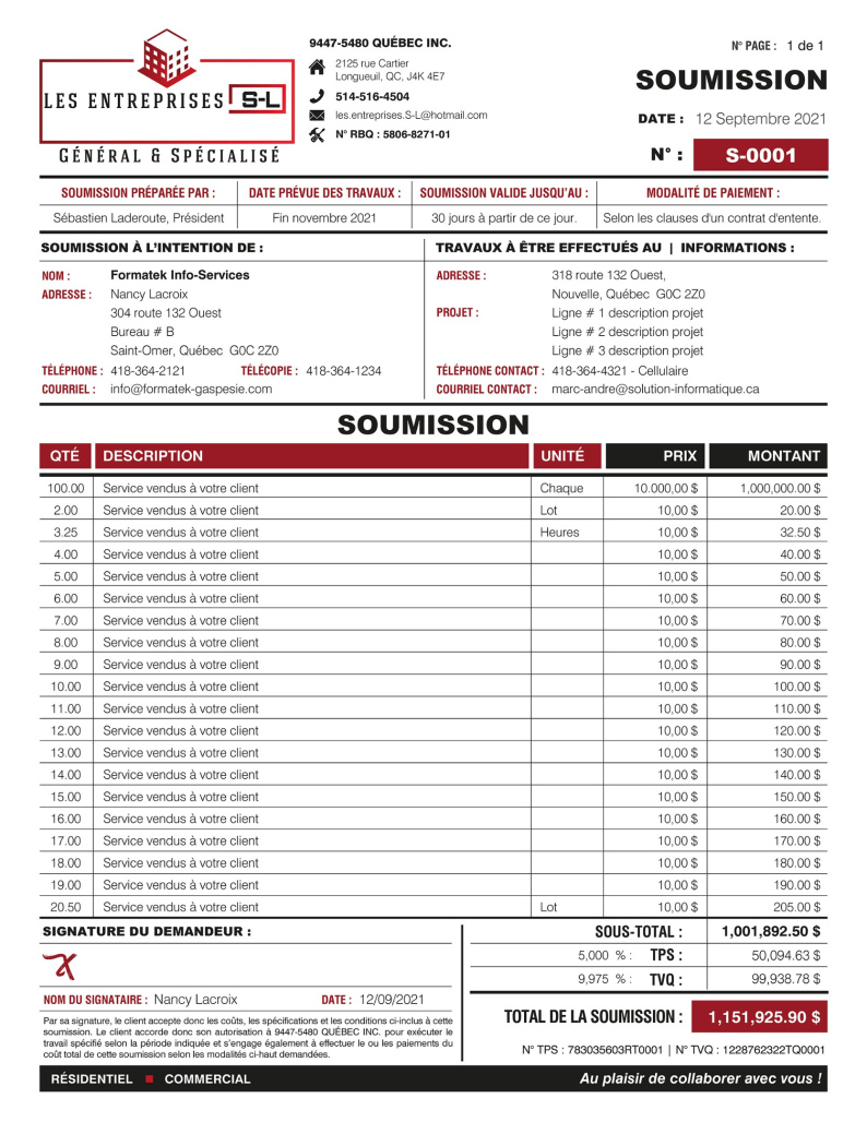 SOUMISSION / DEVIS / ESTIMATION |