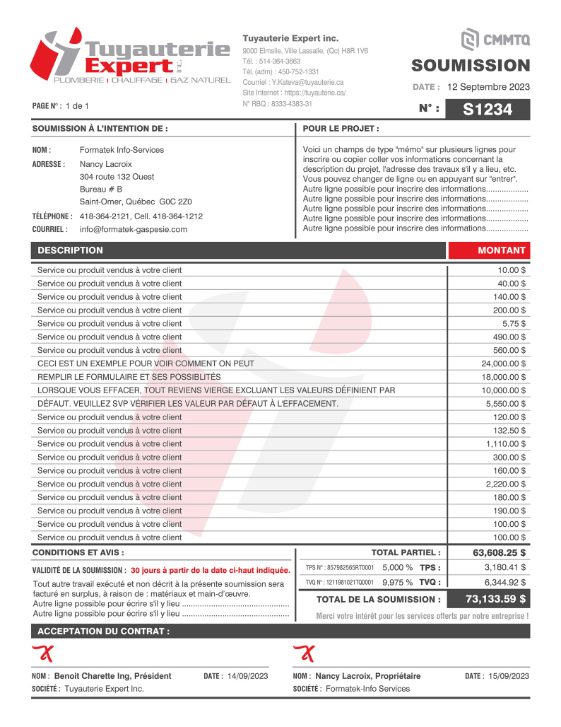 SOUMISSION / DEVIS / ESTIMATION |