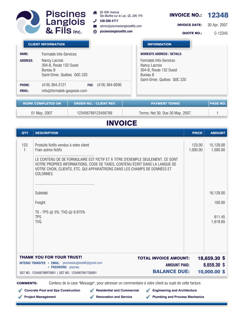 INSTALLATION : Pour la première commande, vous devez également prévoir un coût unique obligatoire de 40.00 $ pour l'installation à distance de 1 à 3 formulaires afin que la procédure vous soit expliquée pour une première fois (téléphone + connexion Internet). Ce prix sera inclus à la soumission de prix officielle qui vous sera envoyée par courriel.