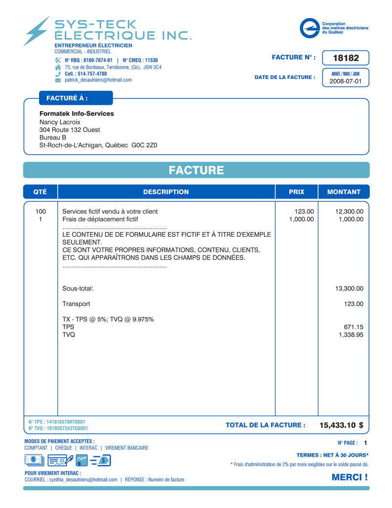 INSTALLATION : Pour la première commande, vous devez également prévoir un coût unique obligatoire de 40.00 $ pour l'installation à distance de 1 à 3 formulaires afin que la procédure vous soit expliquée pour une première fois (téléphone + connexion Internet). Ce prix sera inclus à la soumission de prix officielle qui vous sera envoyée par courriel.