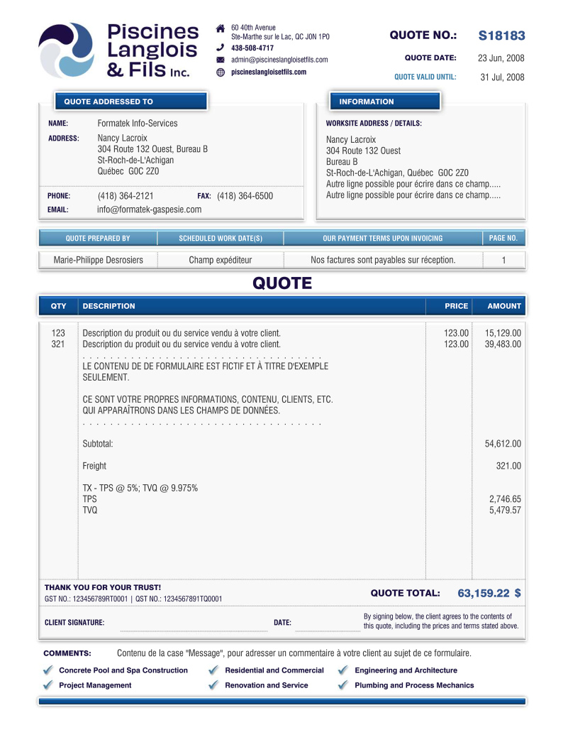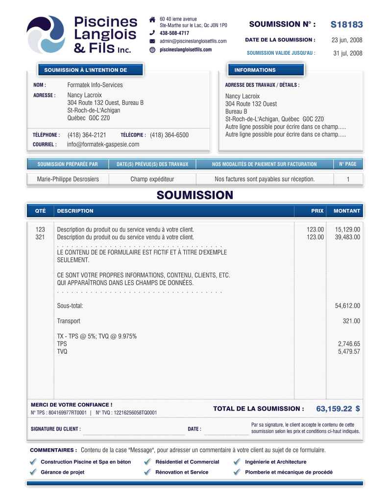SOUMISSION / DEVIS / ESTIMATION |