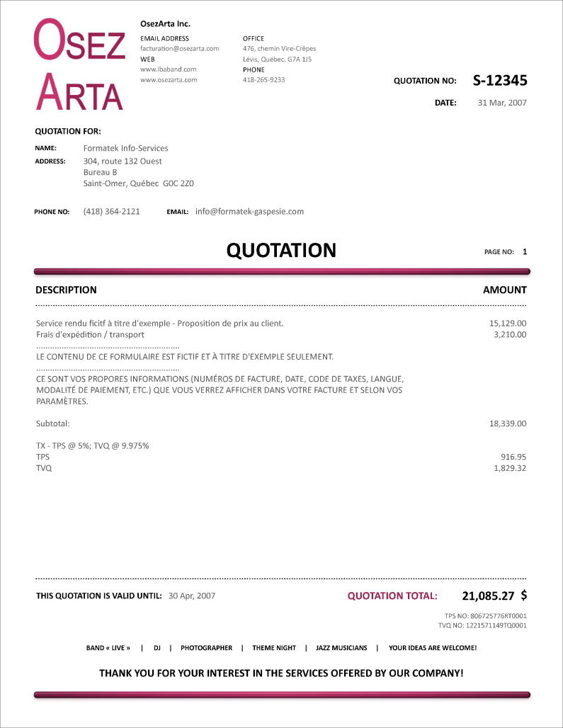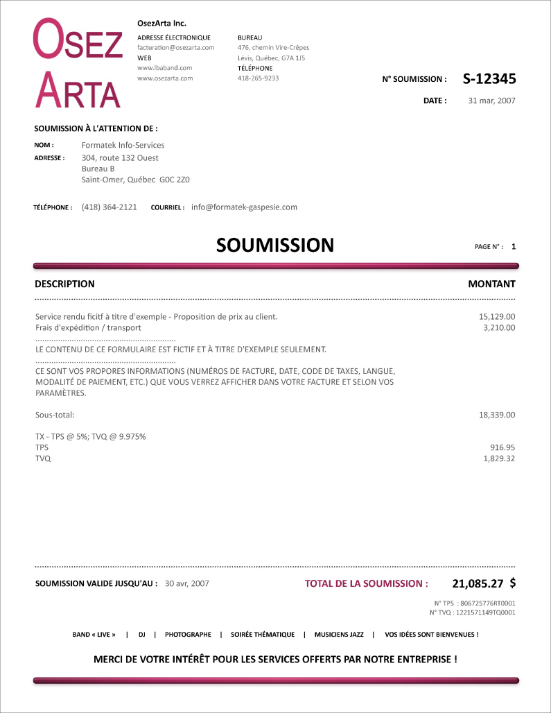 SOUMISSION / DEVIS / ESTIMATION |