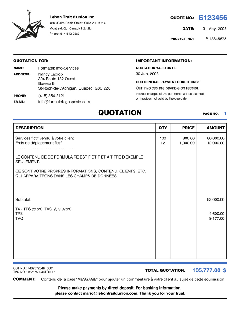 INSTALLATION : Pour la première commande, vous devez également prévoir un coût unique obligatoire de 40.00 $ pour l'installation à distance de 1 à 3 formulaires afin que la procédure vous soit expliquée pour une première fois (téléphone + connexion Internet). Ce prix sera inclus à la soumission de prix officielle qui vous sera envoyée par courriel.