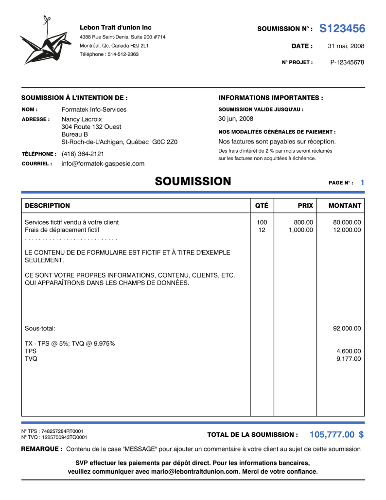 SOUMISSION / DEVIS / ESTIMATION |